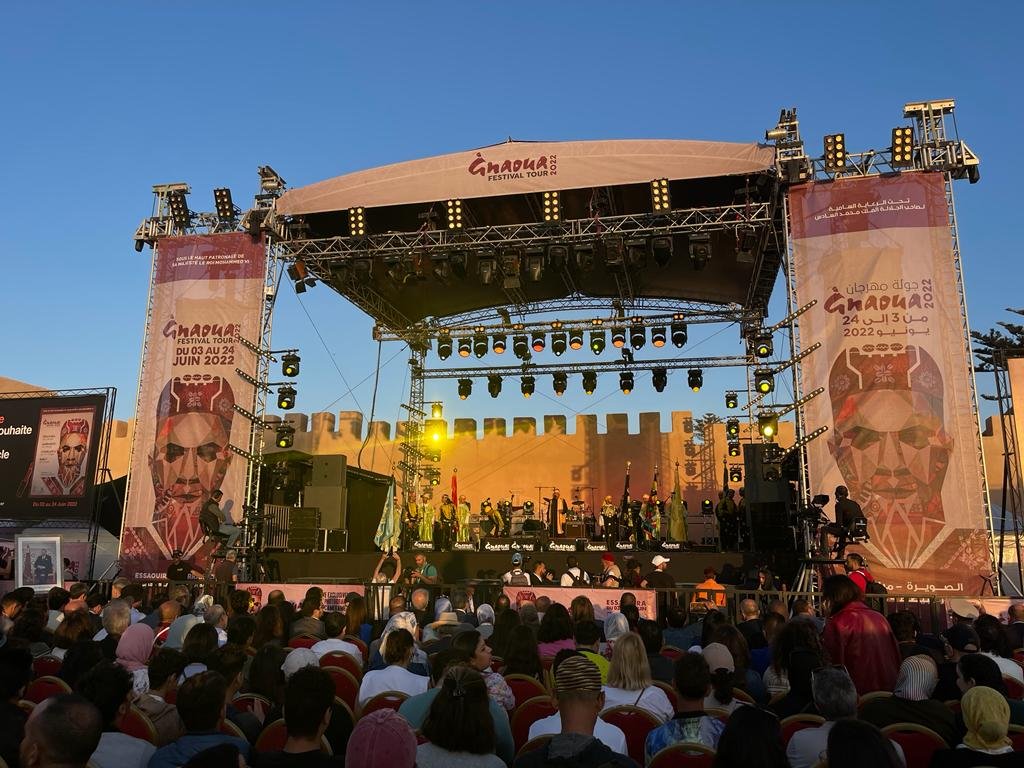 Es casi medianoche en Essaouira, esa joya ventosa de la costa marroquí que late a un ritmo distinto. El verano aprieta, pero la brisa marina muerde con ganas. Estamos en los márgenes de una marea humana de miles de almas, hombro con hombro, hipnotizados ante un escenario que escupe luz y flanqueado por muros de sonido que imponen respeto. Hay quien baila como si no hubiera un mañana; otros simplemente se balancean, entregados al vaivén.